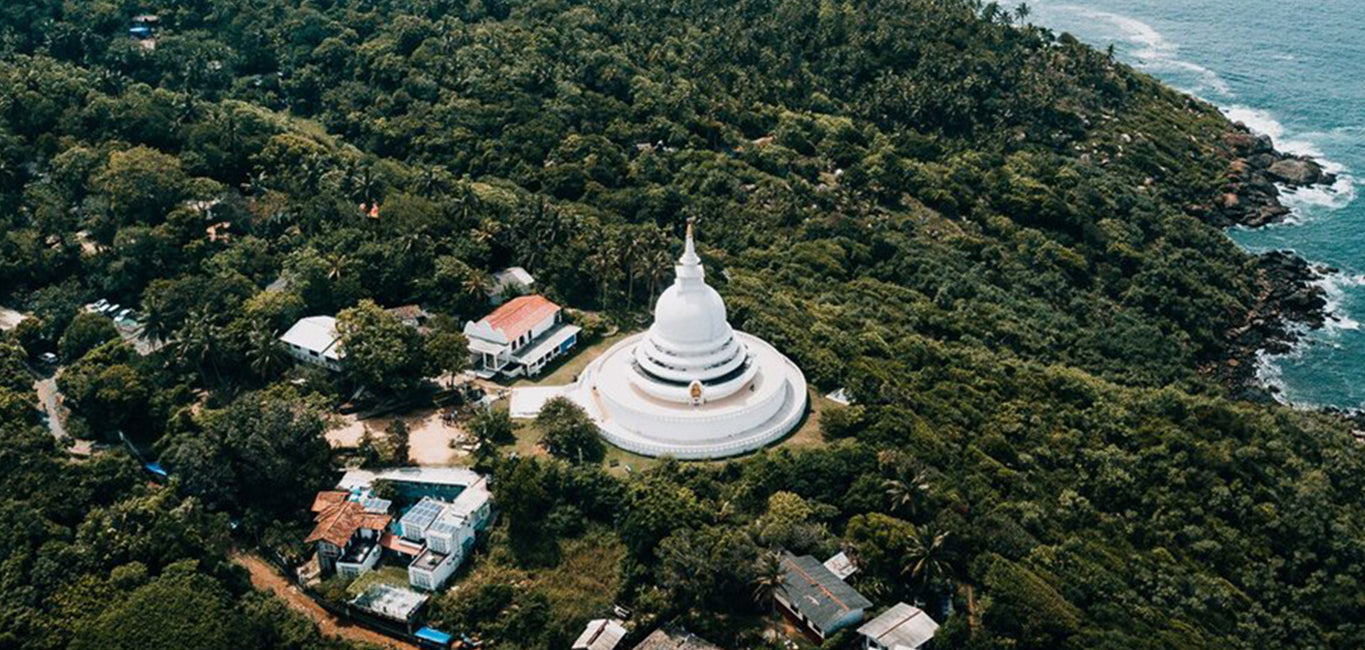Unawatuna beach, The picturesque semi circular bay beach running no more than kilometer, fringed by groves of palm is terminated by rocky headlands at either end.The splendid stupa on the summit of northern headland makes Unawatuna unique among the other beaches of Sri Lanka.