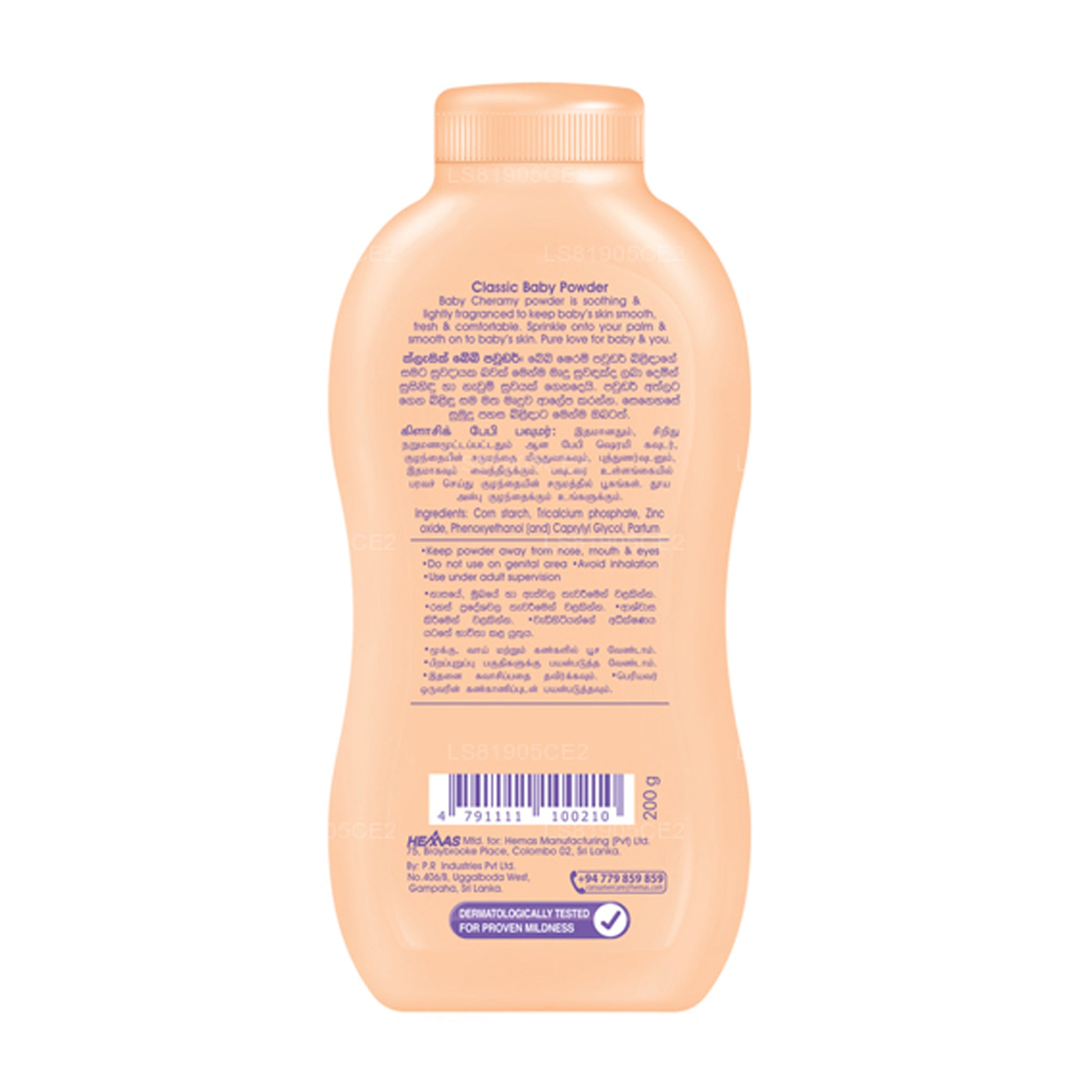 Baby Cheramy Classic Baby Talc is a gentle and lightly fragranced powder that keeps baby's skin smooth, fresh, and comfortable. It prevents skin irritation by removing excess moisture after baths, ensuring your baby's skin stays dry and happy.