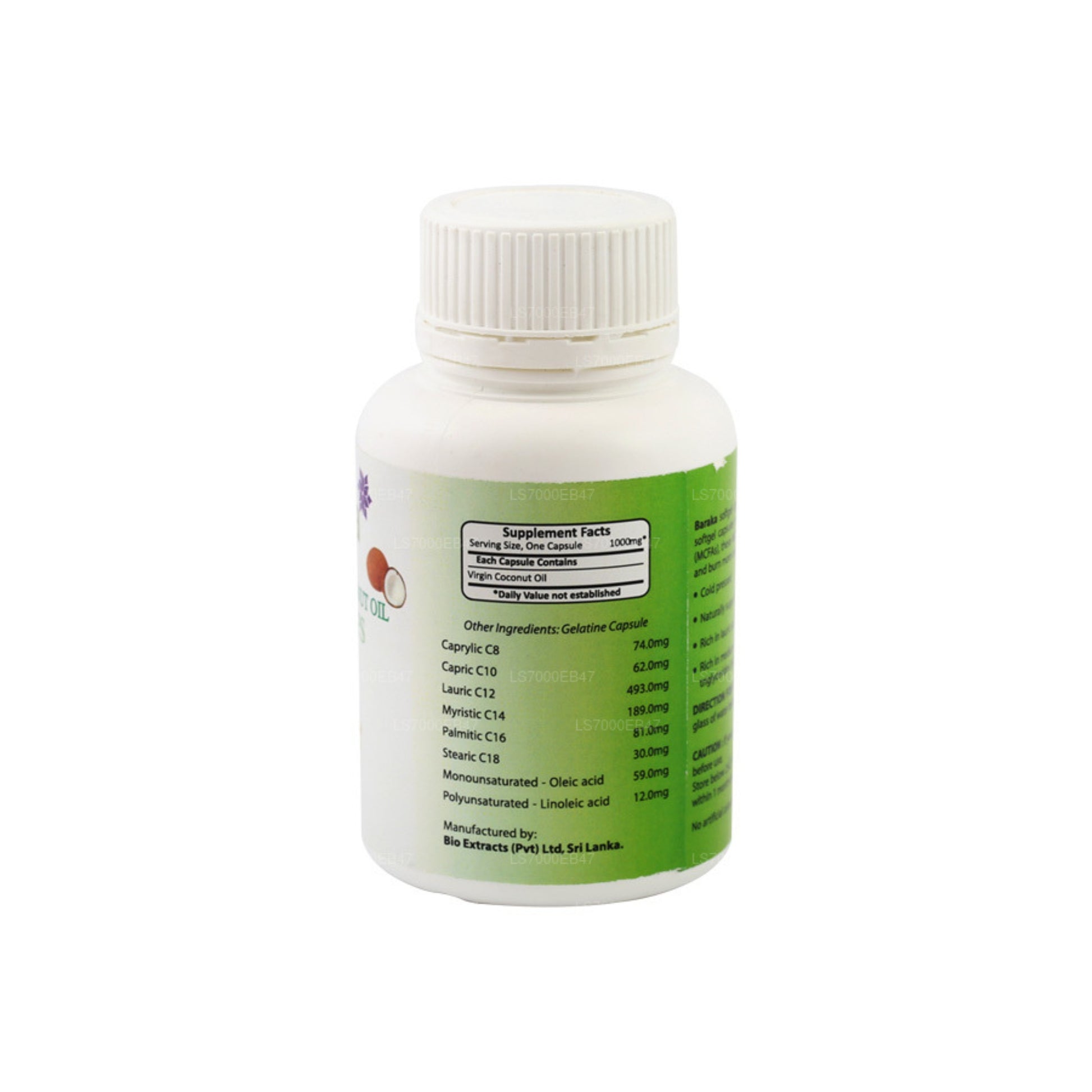 Baraka Virgin Coconut Oil (90 Capsules) is a premium dietary supplement derived from high-quality coconuts. It contains cold-pressed virgin coconut oil, rich in essential fatty acids and MCTs. These capsules offer numerous health benefits, including supporting cardiovascular health, boosting the immune system, and providing a quick source of energy. The capsules are tasteless, odorless, and vegetarian-friendly, making them easy to incorporate into your daily routine. Baraka prioritizes quality, sustainability, and fair trade practices. Incorporate Baraka Virgin Coconut Oil capsules into your regimen for a convenient way to enjoy the benefits of coconut oil.