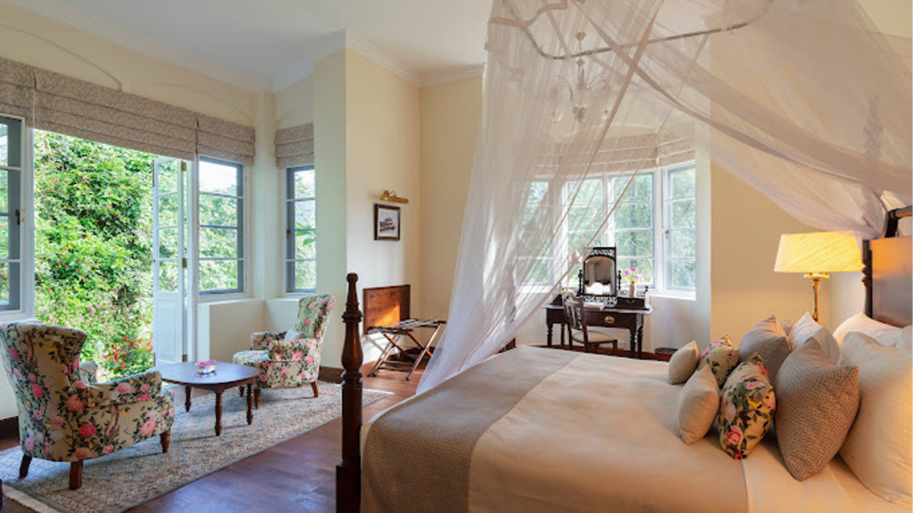 The bungalow offers an intimate experience with its four Garden Suites and one Luxury Room, each designed to provide comfort and elegance. The rooms are adorned with parquet floors and feature open fireplaces in the dining and drawing rooms, reflecting the colonial charm of a bygone era. Each suite is equipped with modern amenities, including: