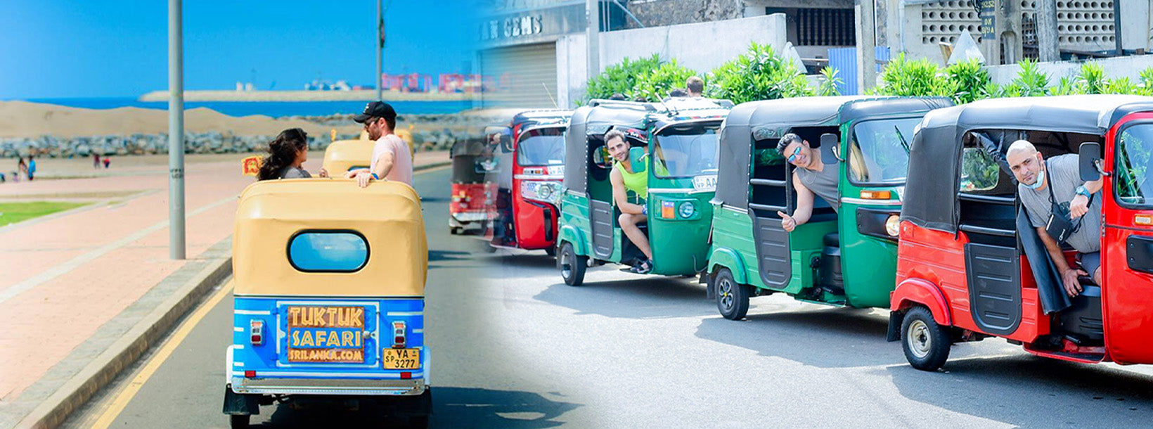 Te alustate oma hommikust safarit kell 09.00 või õhtust safarit kell 15.30 oma hotellist Colombos. Astuge oma spetsiaalsesse transpordivahendisse: kabriolett-tuk-tuk, mis mahutab kuni kaks reisijat. Need mugavad kolmerattalised sõidukid on varustatud pardal olevate jahutitega suupistete ja jookide hoidmiseks, kahesuunaliste raadiosaatjatega ning vihmase ilma korral antakse vihmakatted ja vihmavarjud. Võite isegi muusikat kaasa võtta ja ühendada selle tipptasemel helisüsteemiga.