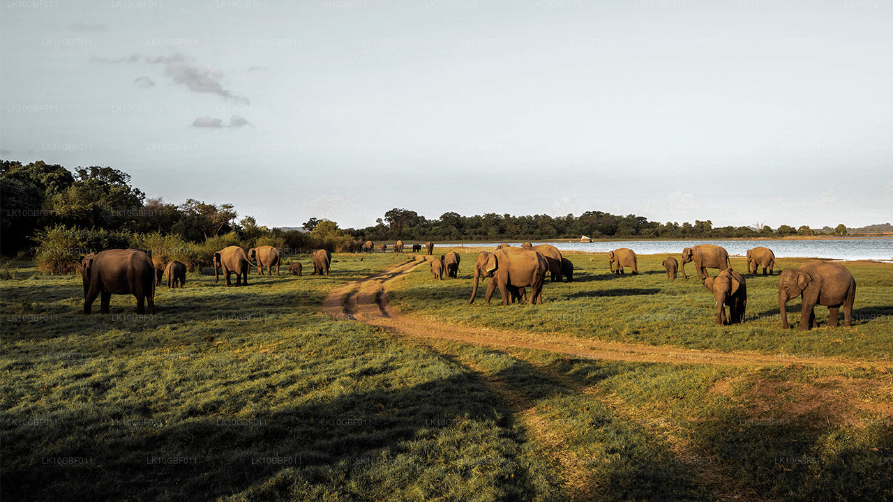 This safari takes you on a ride through the Minneriya National Park. Enjoy the sight of over 150 elephants congregating in one place during the famous Great Elephant Gathering, which happens in the dry season between May to October. In addition to elephants, get a chance to also see many mammals, birds, reptiles and amphibians in the scrublands, forests and other areas.
