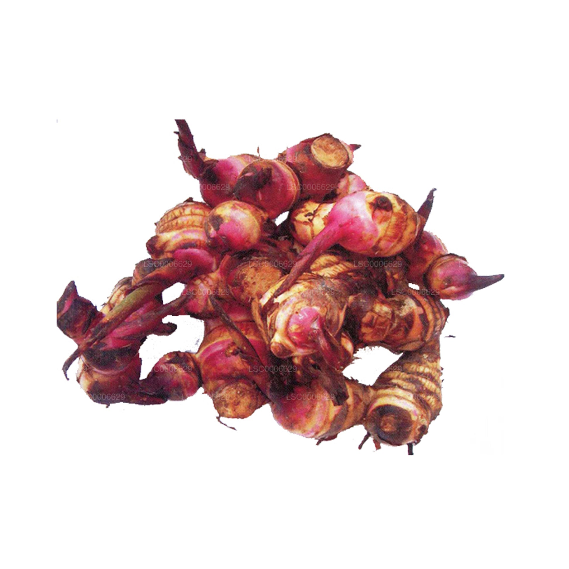 Canna edulis, commonly known as Indian Shot, goes by the name Buthsarana amongst the locals. It is a plant with large elongated leaves and produces scarlet-red flowers. Thanks to the vibrant color of its flowers, Buthsarana is commonly grown as a flowering plant in gardens, in addition to its uses as a tuber crop. It grows well in the wet zone and the lowlands of Sri Lanka. The tubers can be harvested 8-10 months after cultivation. There are two types of Buthsarana tubers as red Buthsarana and white Buthsarana.