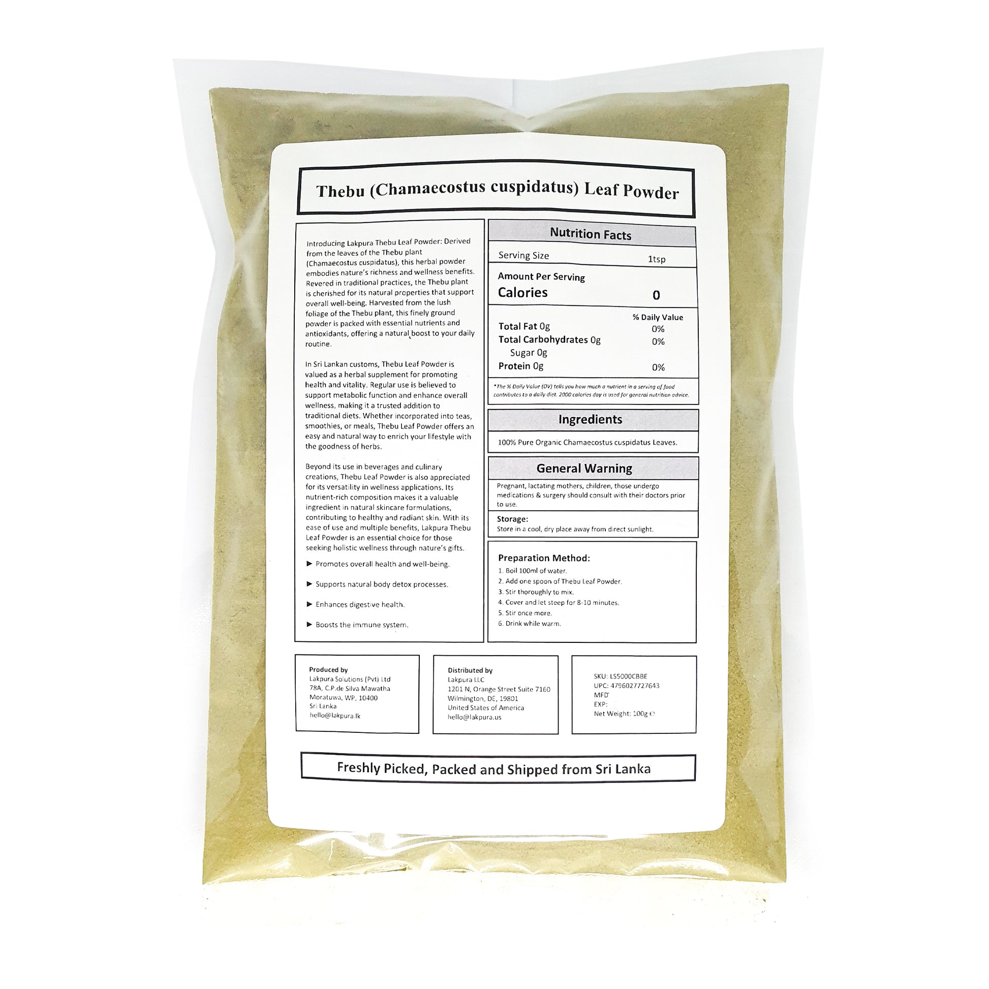 Note: It is advised that you consult with a healthcare professional prior to incorporating the Thebu Leaf Powder to your daily diet, especially if there are any existing health conditions and if you are under medication.