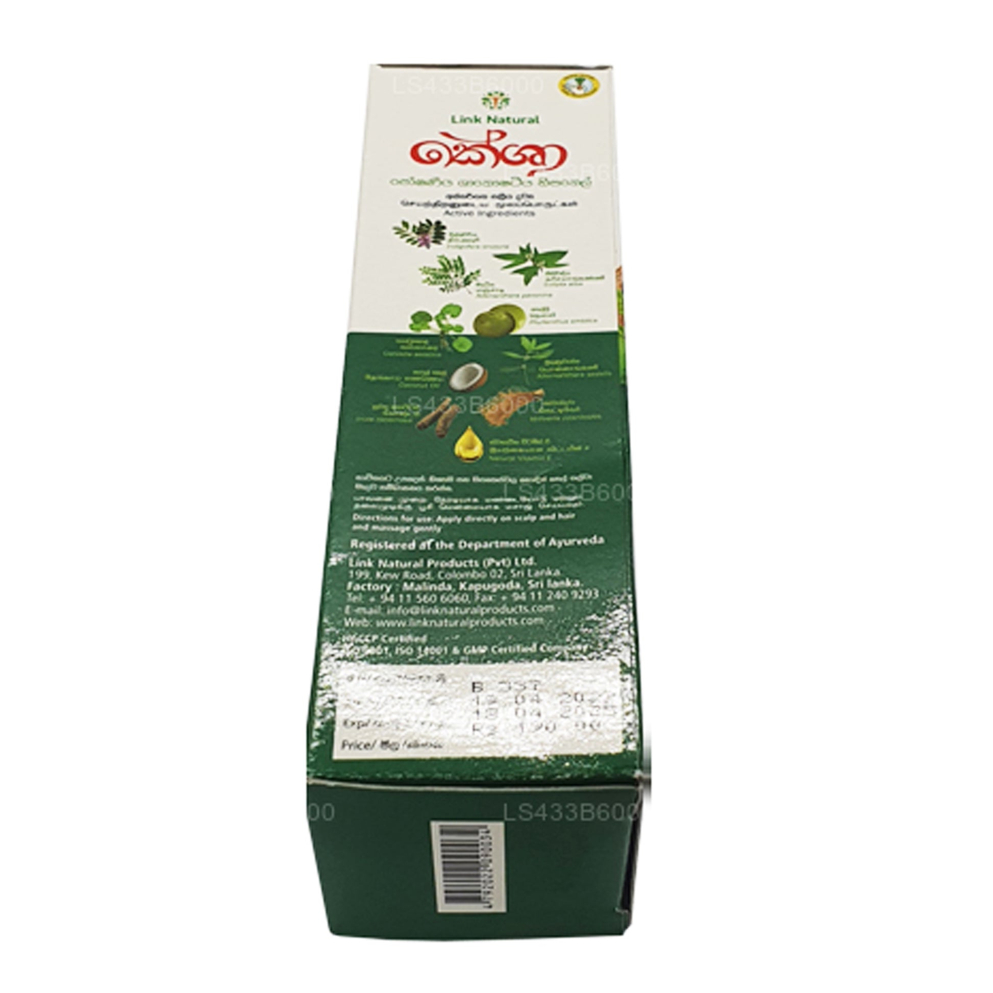 Ingredients: Nilavariya, Keekirindiya, Mukunuwenna, Madatiya, Nelli, Gotukola, Savendara, Suwandakottan, Natural Vitamin E, Coconut oil