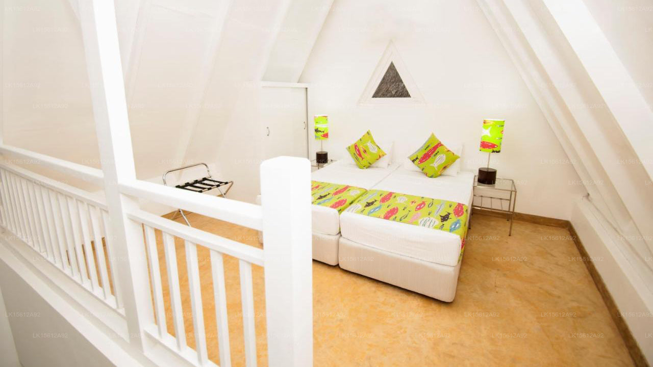The resort features elegantly designed chalets with wooden interiors, reflecting Sri Lankan coastal charm. Each chalet includes air conditioning, an en-suite bathroom, and a private balcony or terrace with stunning sea or garden views.