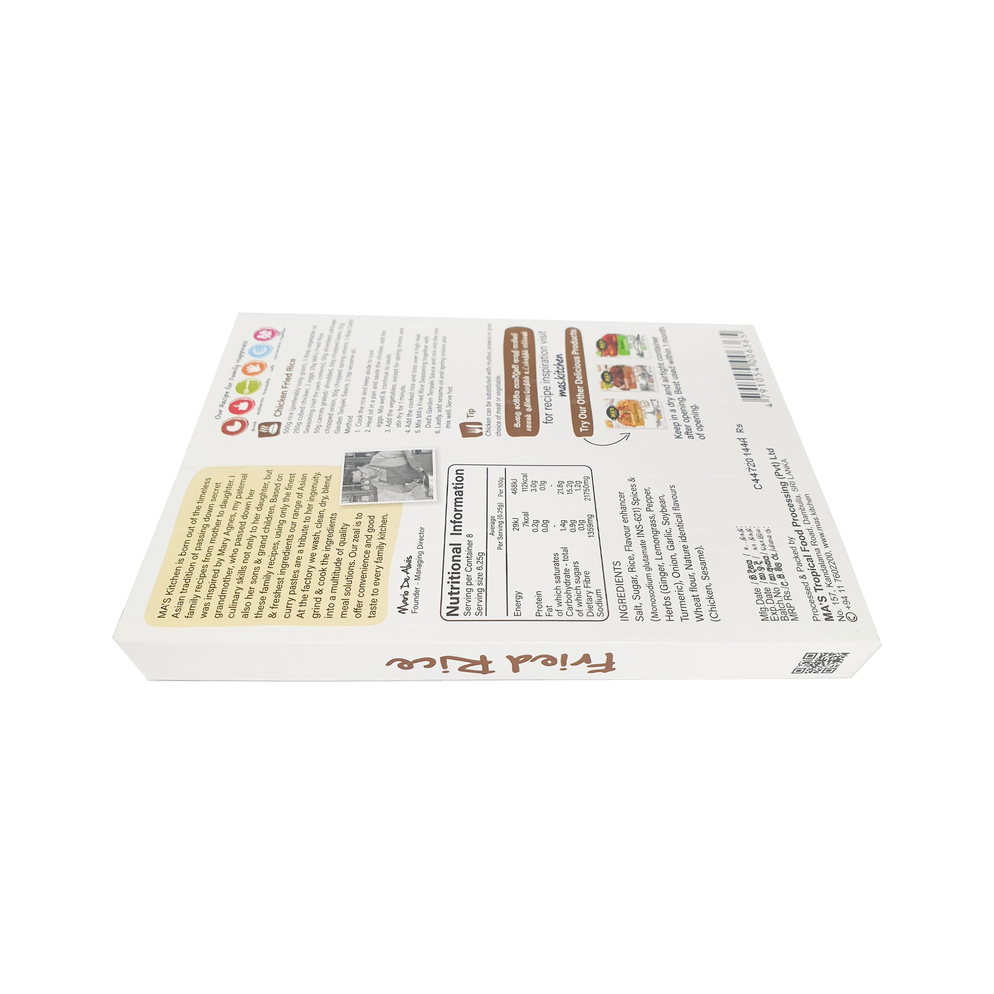 MA's Kitchen Fried Rice Seasoning (60g) is a delightful blend of premium herbs and spices designed to elevate your fried rice dishes. With its authentic flavors and versatile application, this seasoning enhances any fried rice, from classic vegetable to protein-rich variations. Free from artificial additives and MSG, it ensures a healthier choice for your meals. Conveniently packaged in a resealable 60g pack, MA's Kitchen Fried Rice Seasoning guarantees an aromatic and delectable experience every time you cook. Elevate your fried rice game with this exceptional seasoning and savor the irresistible tastes and aromas it brings to your table.