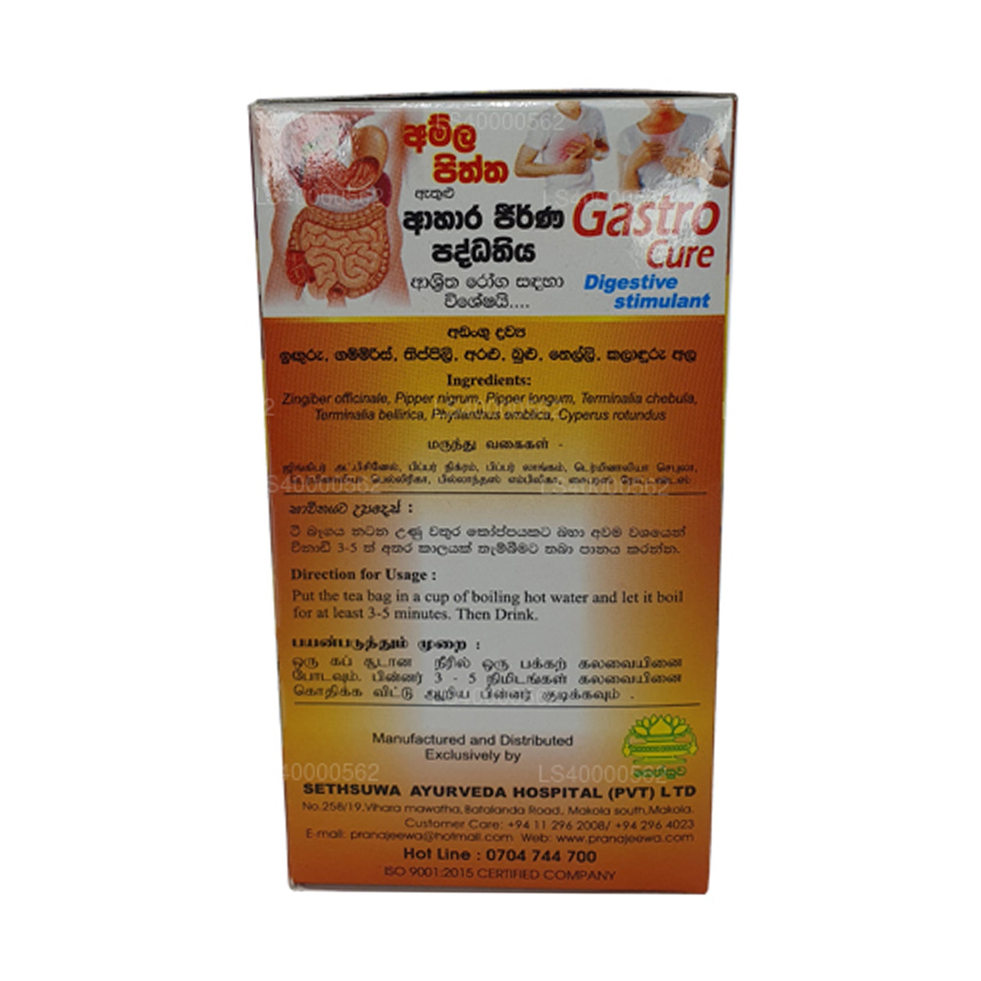 (SKU: LS40000562) Sethsuwa Gastro Cure herbal drink is an ancient drink made from "Avipaththikara Choorna" which is a combination of many herbal medicines. Sethsuwa Gastro Cure herbal drink is observed on the digestive system and it is an effective herbal remedy for gastritis, Hyper acidity, dyspepsia, constipation, anoroxia, stomatitis, nausea and vomiting.
