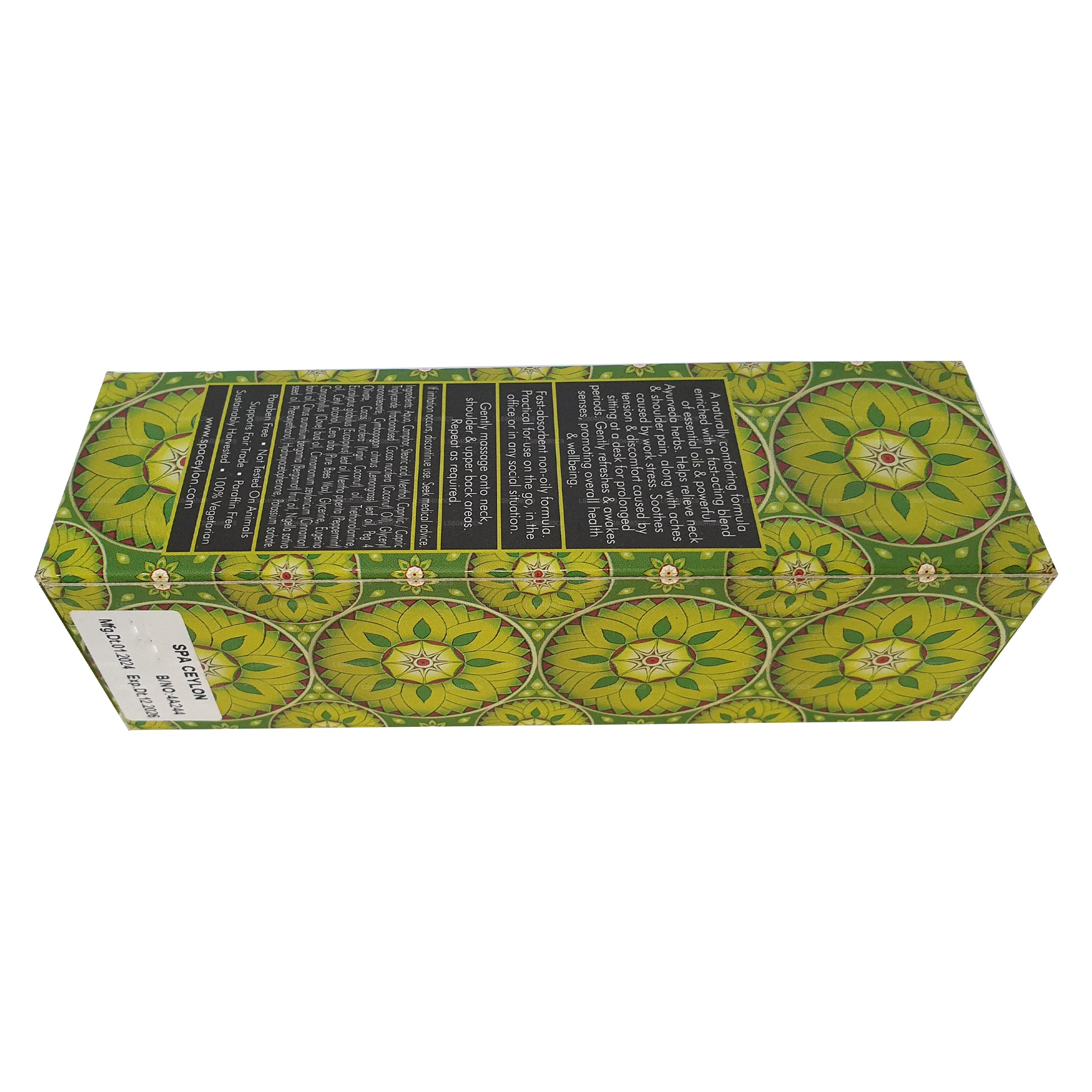 Fast-absorbent non-oily formula. Practical for use on the go, in the office or in any social situation. A naturally comforting formula enriched with a fast acting blend of essential oils & powerful Ayurveda herbs. Helps relieve neck & shoulder pain, along with aches caused by work stress. Soothes tension & discomfort caused by sitting at a desk for prolonged periods. Gently refreshes & awakes senses, promoting overall health & well-being.