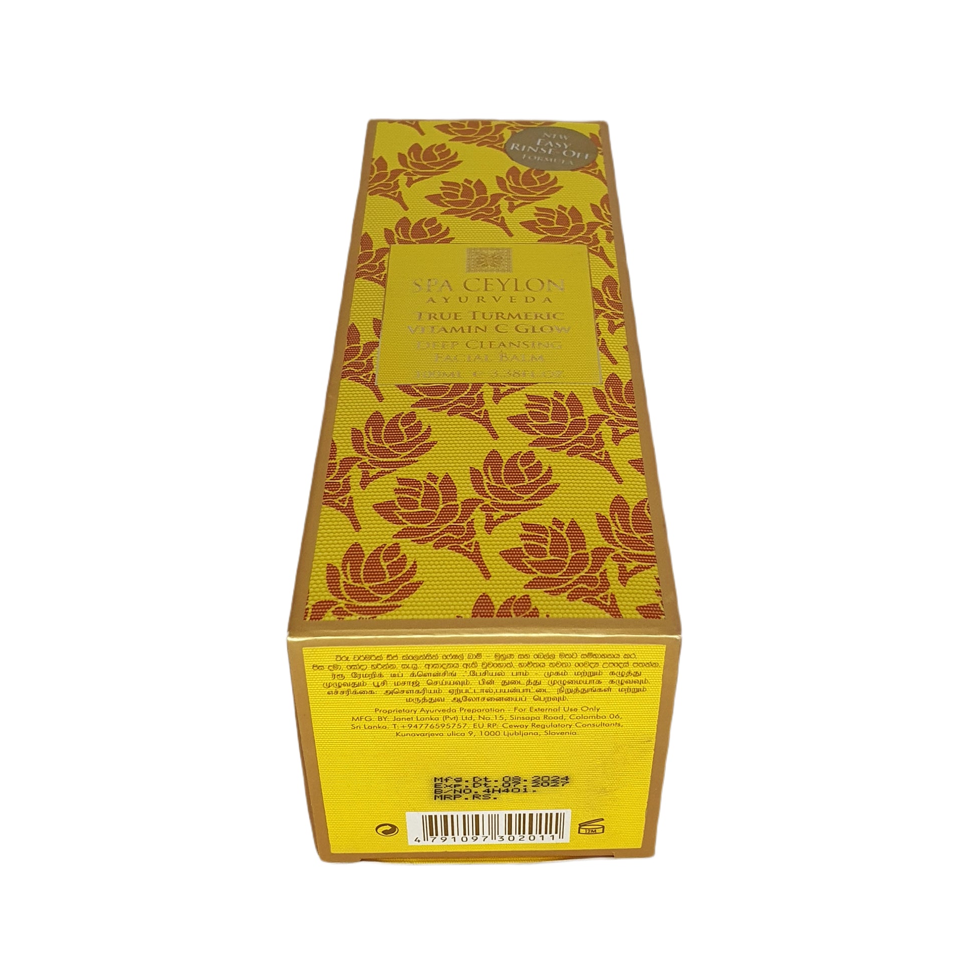 Reveal your skin’s natural glow with Spa Ceylon True Turmeric – Vitamin C Glow Deep Cleansing Facial Balm, a luxurious Ayurvedic blend that purifies, energizes, and nourishes. Infused with Turmeric, a powerful antioxidant and anti-inflammatory herb, it helps revive dull skin, brighten the complexion, and enhance radiance. The rich, creamy texture melts away makeup, oil, and impurities, leaving the skin clean, soft, and rejuvenated. Enriched with Virgin Coconut and Sweet Almond for deep hydration and protection, while Mango and Kokum Butters restore suppleness. Supercharged with Vitamin C-rich Rosehip, Rice Bran, and Wheatgerm oils, it promotes even tone, youthful vitality, and long-term skin wellness, offering a spa-like glow with every use.