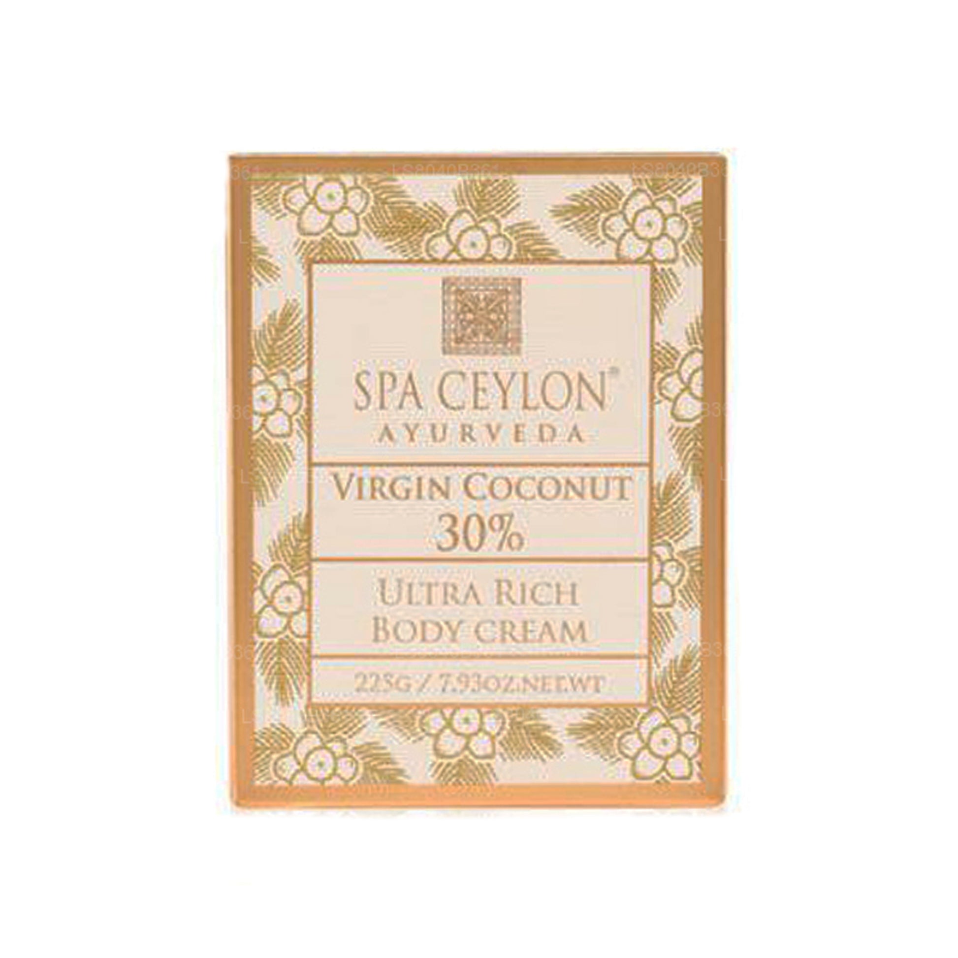 (SKU: LS8040B361) The "Spa Ceylon Virgin Coconut 30% - Ultra Rich Body Cream 200g" is a skincare product offered by Spa Ceylon, a brand known for its luxurious and Ayurveda-inspired beauty and wellness products. This body cream is formulated with a high content of Virgin Coconut Oil, which is renowned for its moisturizing and nourishing properties. With a concentration of 30% Virgin Coconut Oil, this body cream aims to provide intense hydration and deep moisturization to the skin. The 200g quantity indicates the volume of the product in the container. The Ultra Rich Body Cream is likely designed to offer a lavish and indulgent skincare experience, leaving the skin feeling soft, supple, and revitalized. Spa Ceylon's products often draw inspiration from traditional Ayurvedic principles, using natural ingredients to promote both physical and mental well-being. The use of Virgin Coconut Oil in this body cream aligns with the brand's focus on incorporating natural elements for holistic skincare.)