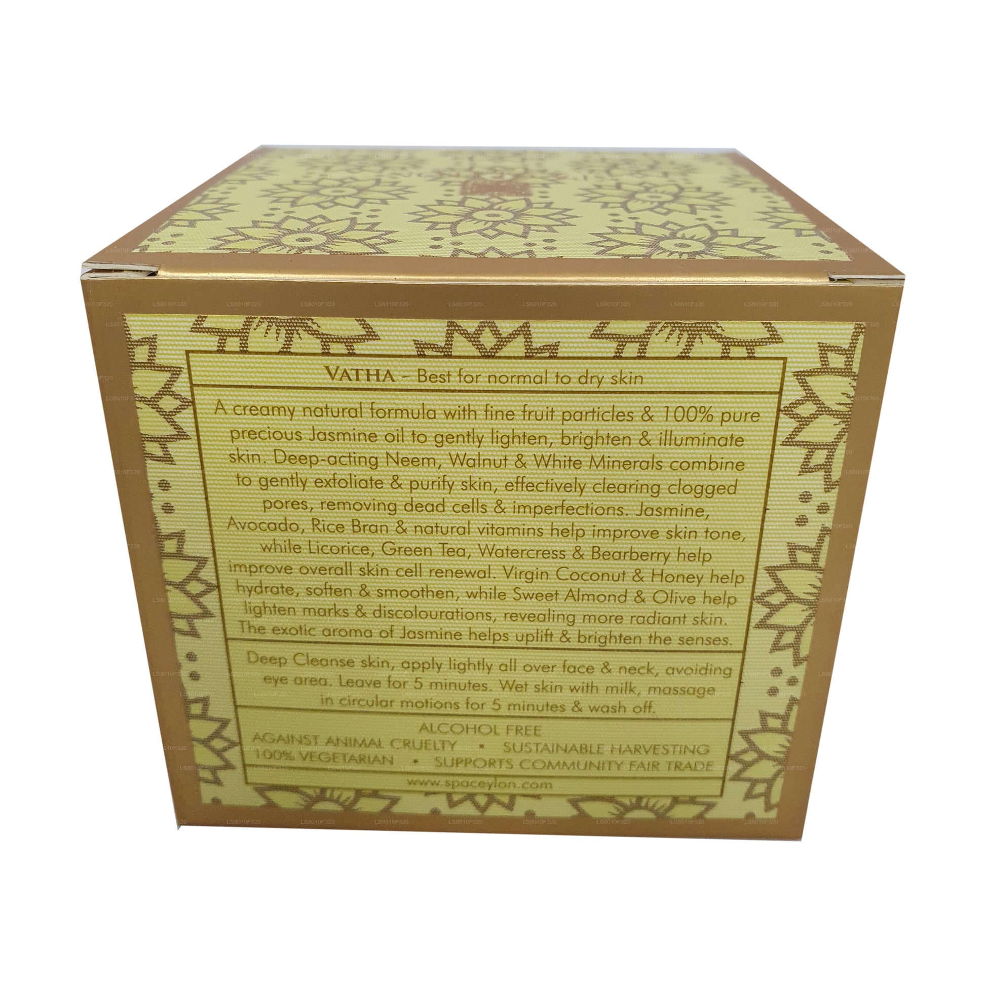 A creamy natural formula with fine fruit particles & 100% pure precious Jasmine oil to gently brighten & illuminate skin. Deep-acting Neem, Walnut & White Minerals combine to gently exfoliate & purify skin, effectively clearing clogged pores, removing dead cells & imperfections. Jasmine, Avocado, Rice Bran & natural vitamins help improve skin tone, while Licorice, Green Tea, Watercress & Bearberry help improve overall skin cell renewal. Virgin Coconut & Honey help hydrate, soften & smoothen, while Sweet Almond & Olive help lighten marks & discolourations, revealing more radiant skin. The exotic aroma of Jasmine helps uplift & brighten the senses.